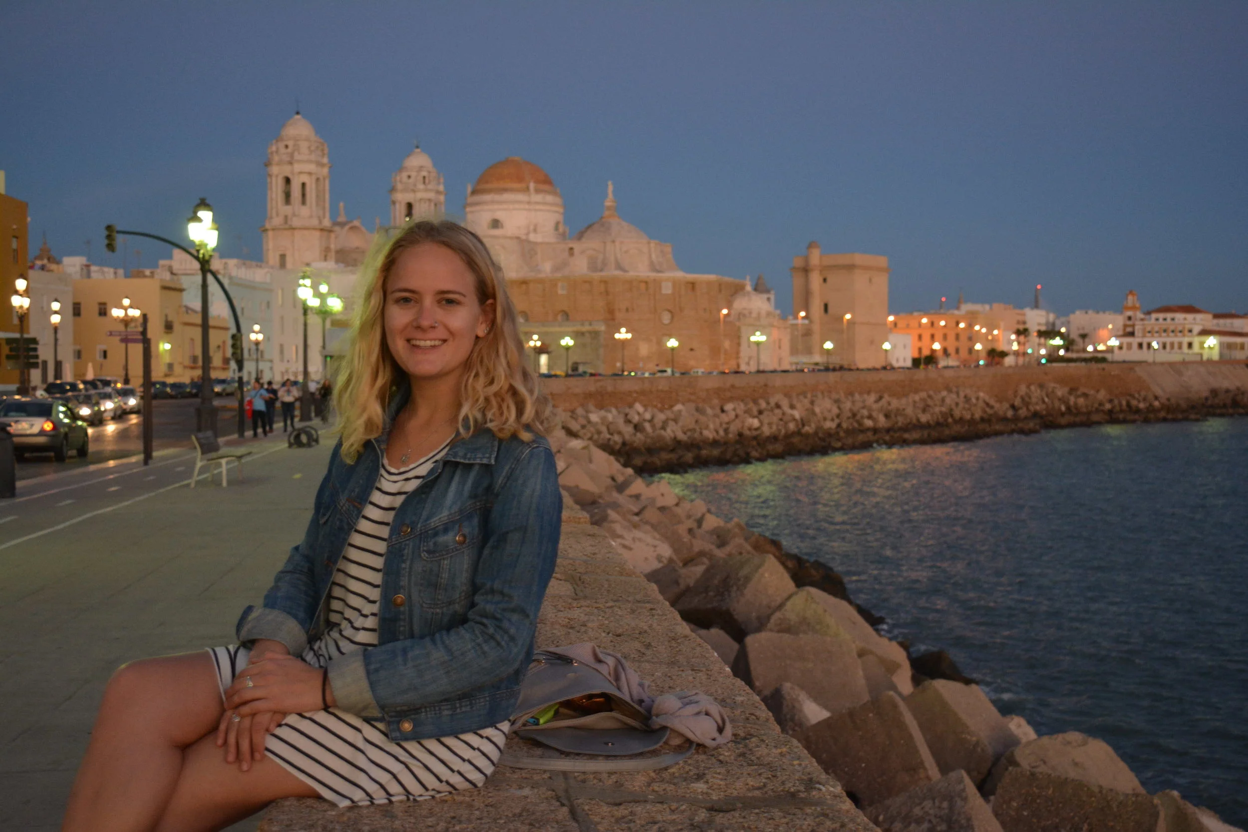 Sitting in front of the Cathedral Nueva in Cadiz, Spain.(Photo by: Ginger Hervey)